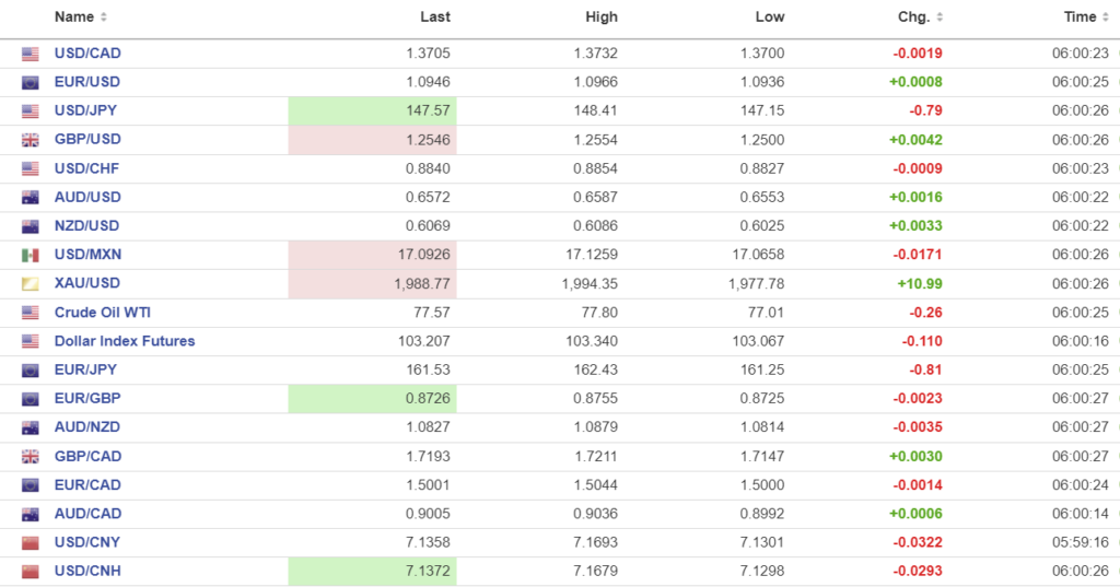 USDJPY is under pressure with prices falling to 147.15 from 148.41. Sentiment is bearish because of speculation that the Fed is done hiking rates while the Bank of Japan will soon be starting to raise rates.