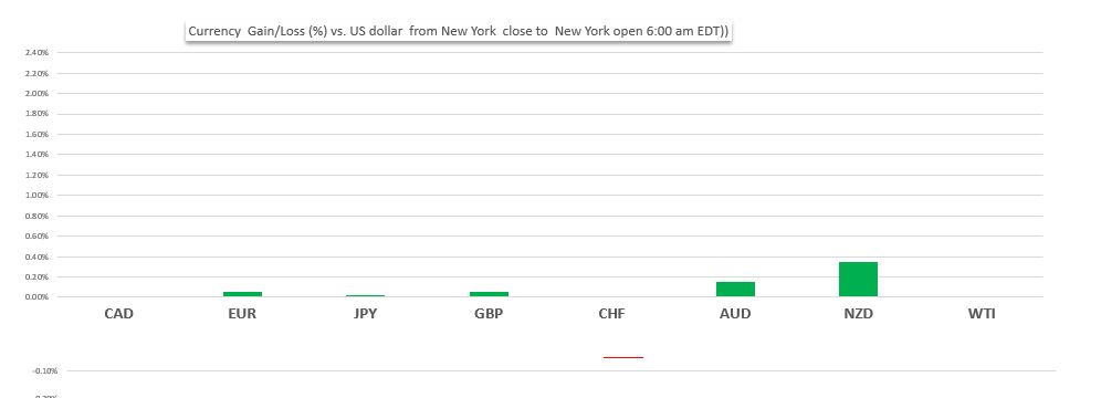 Change in currency value against the US dollar from New York close to New York open