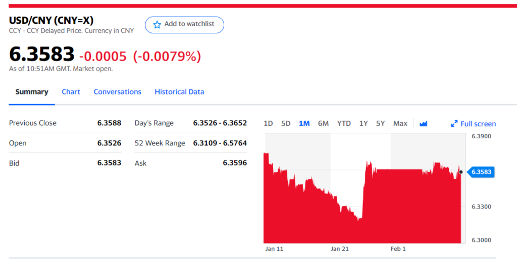 Today’s Bank of China Fix 6.3681, previous 6.3599