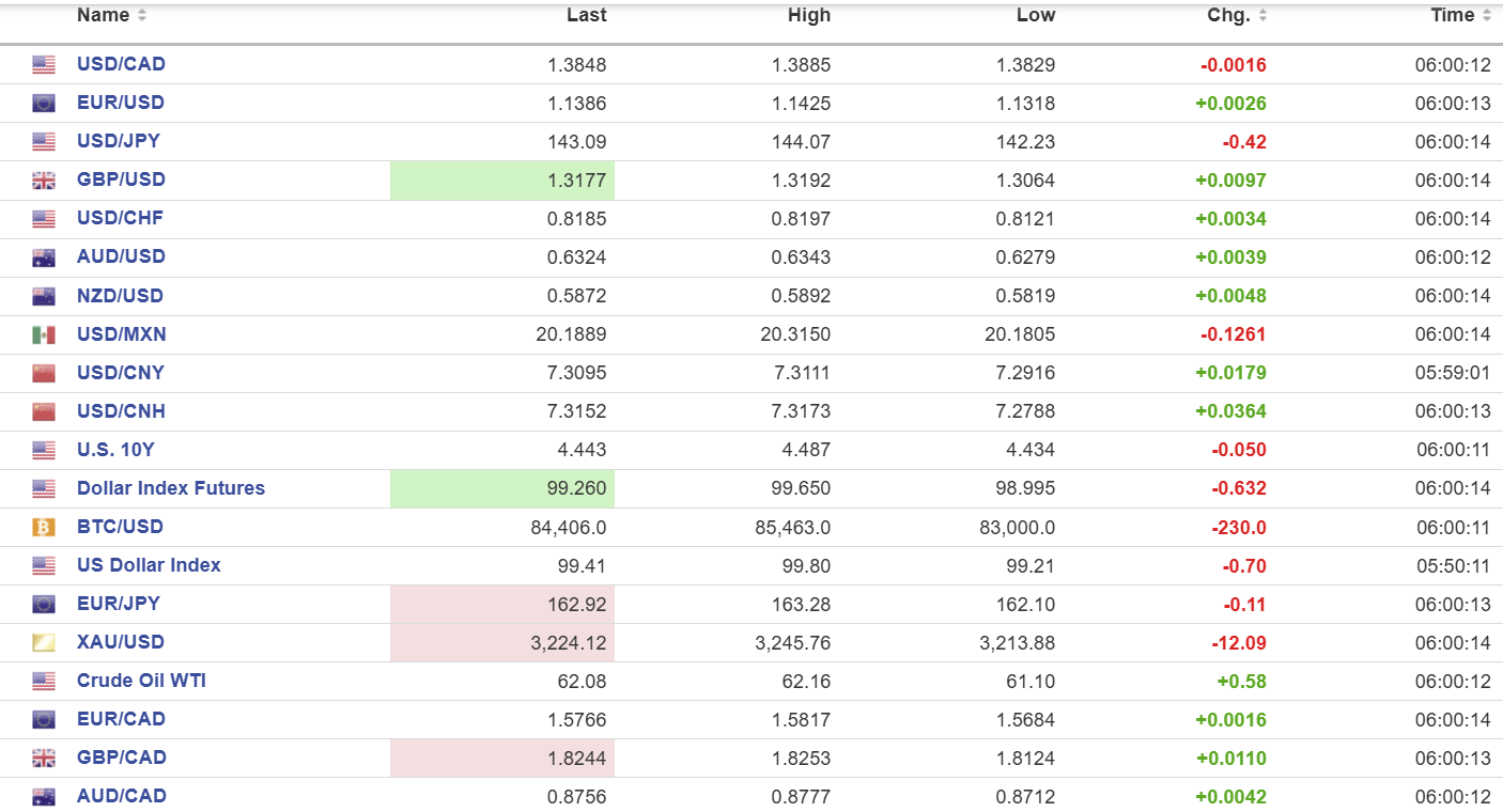 FX high, low, open (as of 6:00 am ET)