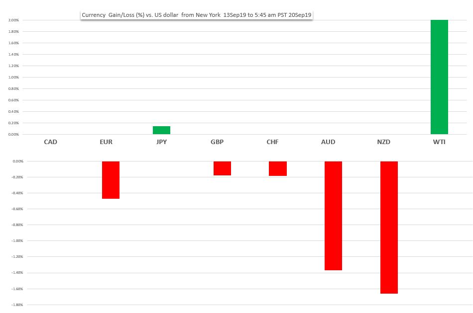 Change in Currency value vs the US dollar-   NY close 13Sep19  to 20Sep19 5:45 am PDT