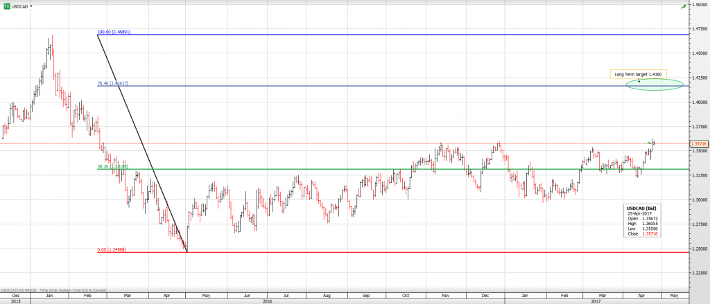 Chart: USDCAD daily with Fibonacci