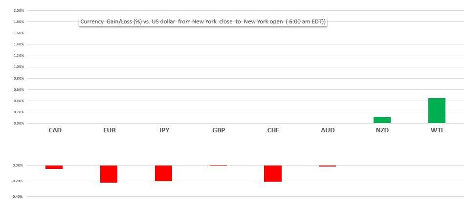 Change in currency value against the US dollar from NY close to  NY  open (6:00 am EST)