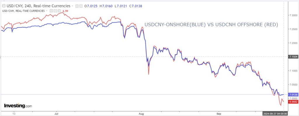 China’s aggressive fiscal and monetary stimulus not only boosted Chinese equity markets, but also lifted other Asian indexes. Japan’s Topix climbed 0.73%, while Australia’s ASX 200 eked out a 0.10% gain. European bourses are in the green as well, with a 0.75% rally in the German Dax leading the pack. Meanwhile, S&P 500 futures are flat.