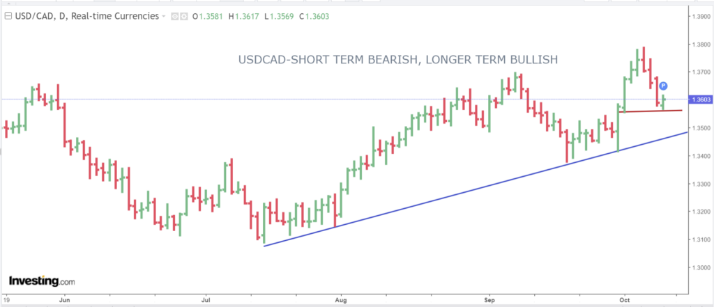 USDCAD was undermined by Friday’s robust employment report which in reality wasn’t that robust as all the gains were due to teachers returning to work. Many economists suggest that the jobs report will not force the BoC to hike rates on October 25.