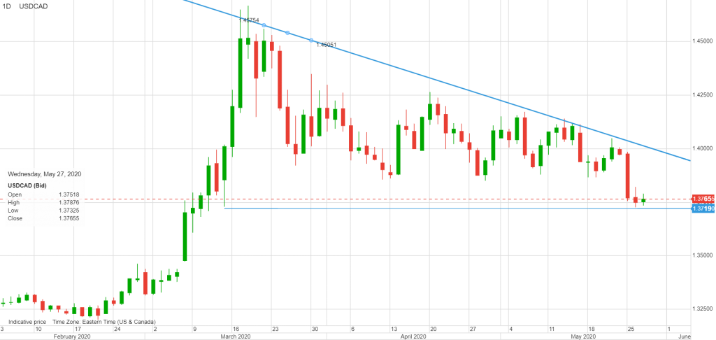 GBPUSD is in a tug of war between demand on the back of an expected pos-COVID-19 lockdown recovery, and fears that EU/UK trade talks will not go beyond December 2020. Traders were also worried about the prospect of negative UK rates, despite BoE Chief Economist Andy Haldane suggesting otherwise.