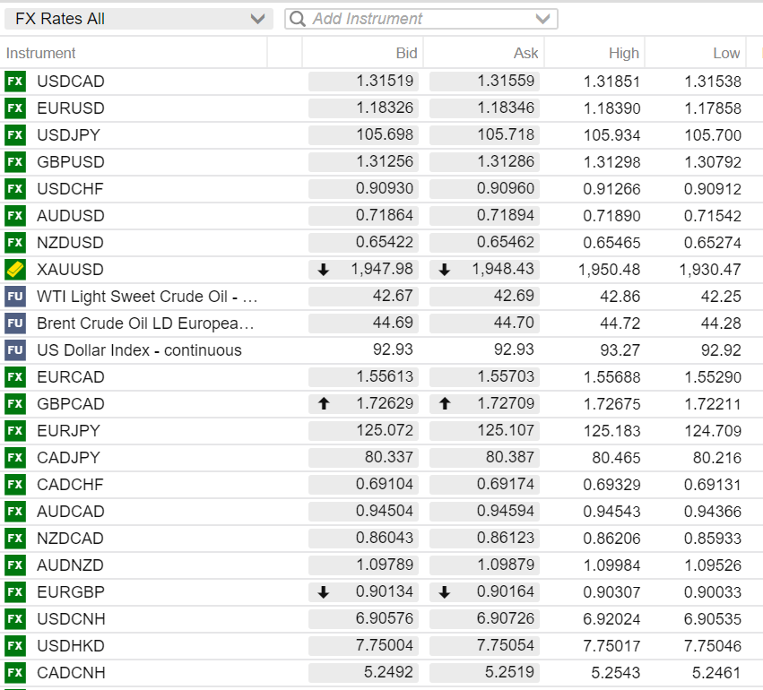 FX open (6:00 am EDT) High, Low, and previous close