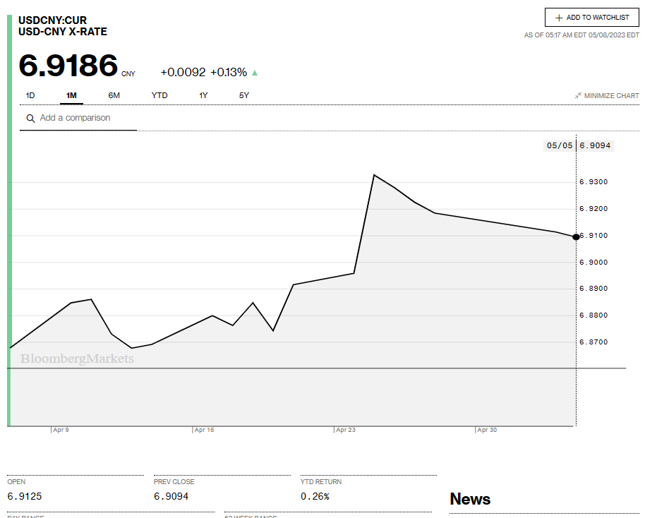 Chart: USDCNY 1 month