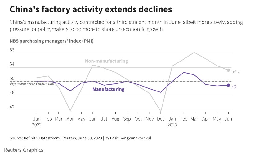 NBS June Manufacturing PMI 49 (forecast 49, May 48.8)