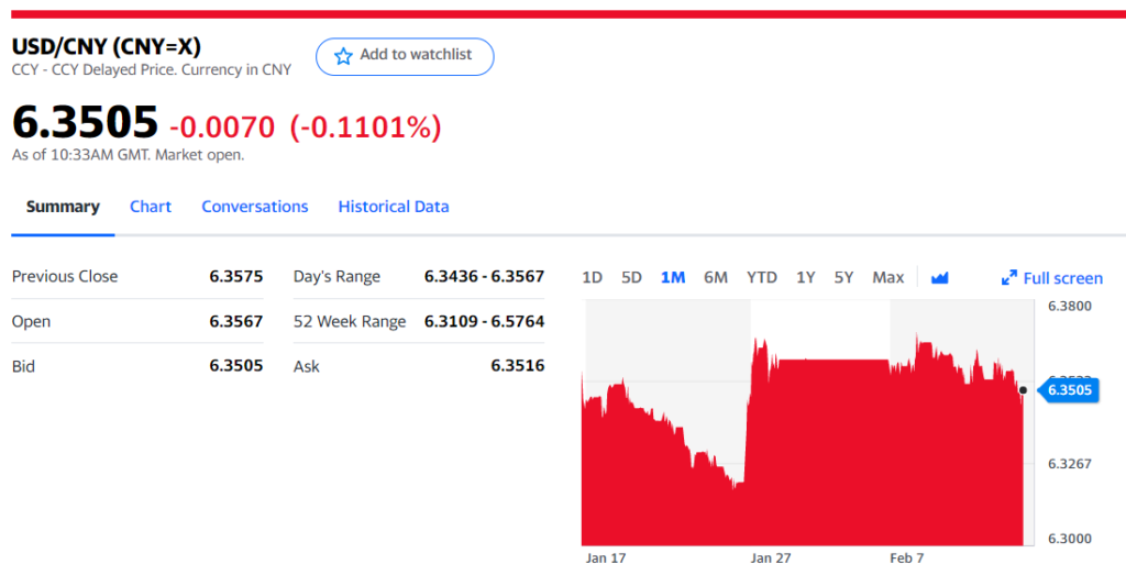 Today’s Bank of China Fix 6.3605, previous 6.3664