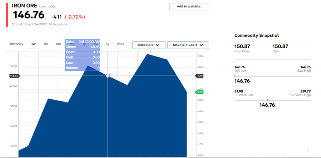 Chart of the Day:  iron ore 1 week