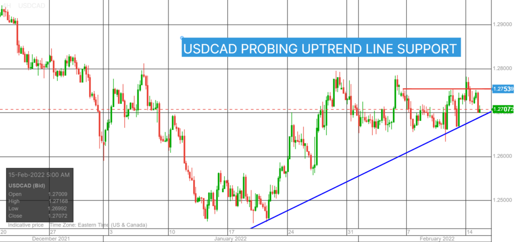 USDCAD rallied to the overnight session high in Asia, due to negative risk sentiment following the weak close on Wall Street. That changed in Europe on reports some Russia troops on the Ukraine border and returned to base, and FX risk sentiment turned positive.  USDCAD dropped in tandem with broad US dollar selling.