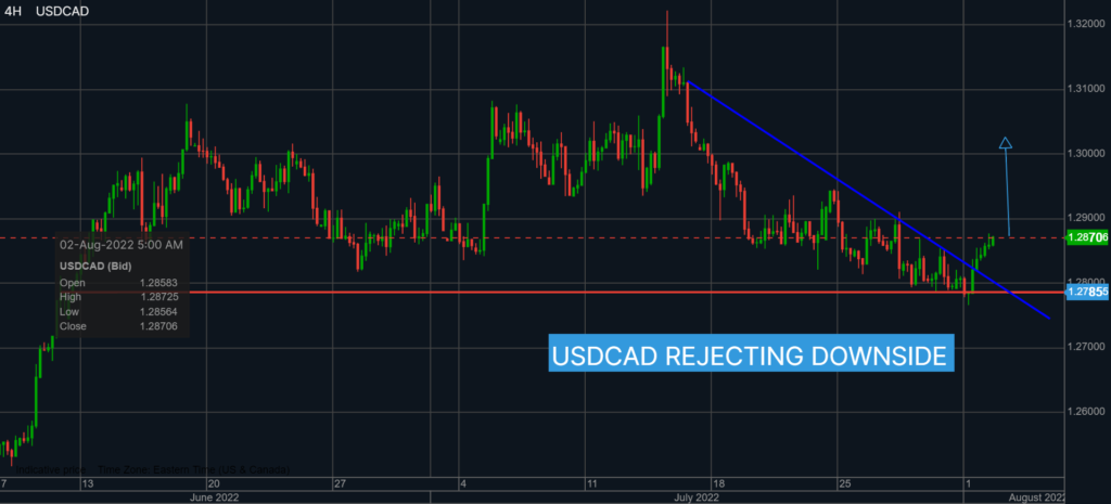 Canadian’s return from a long weekend to somewhat sloppy, thin, and nervous markets.  Russia’s war with Ukraine remained a focus in Europe, while US House Speaker Nancy Pelosi’s Asia cruise had Asian markets on edge. Weaker than expected Chinese PMI data helped drive AUDUSD and NZDUSD lower and USDCAD climbed in sympathy.