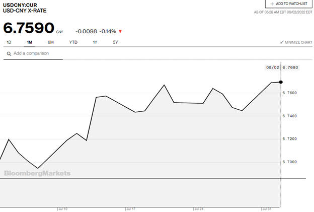 Today’s Bank of China Fix: Aug.1, 6.7462, Aug. 1 6.7467, previous 6.7437