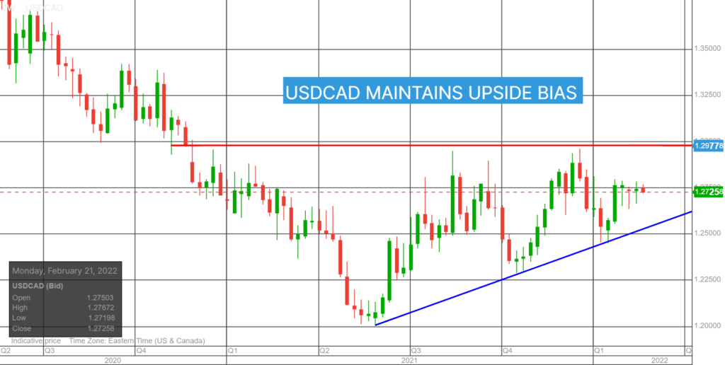 USDCAD direction will be dictated headlines influencing broad US dollar sentiment. The surge in WTI prices will slow USDCAD gains on escalating US and Russia tensions