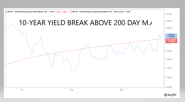 US 10-year Treasury yields rallied from 1.334% yesterday to 1.4465% in Asia and are 1.434% in NY%. Analysts are perplexed as to the trigger for the rally, suggesting gains are driven by hawkish FOMC and Bank of England outlooks and downgrading of global contagion fears from and Evergrande meltdown.