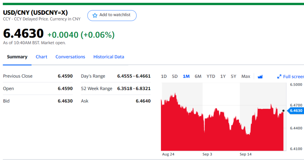 Today’s Bank of China Fix, 6.45999, Previous 6.4749