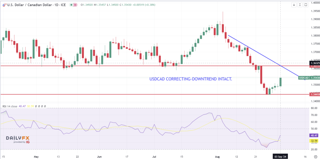 USDCAD has inched higher ever since bouncing off of support at 1.3440 last Thursday but the rally may just be temporary. Even after speculative traders unwound a chunk of short CAD/long US positions, CAD is still the most shorted currency against the US dollar -as of August 27, Commitment of Traders report.