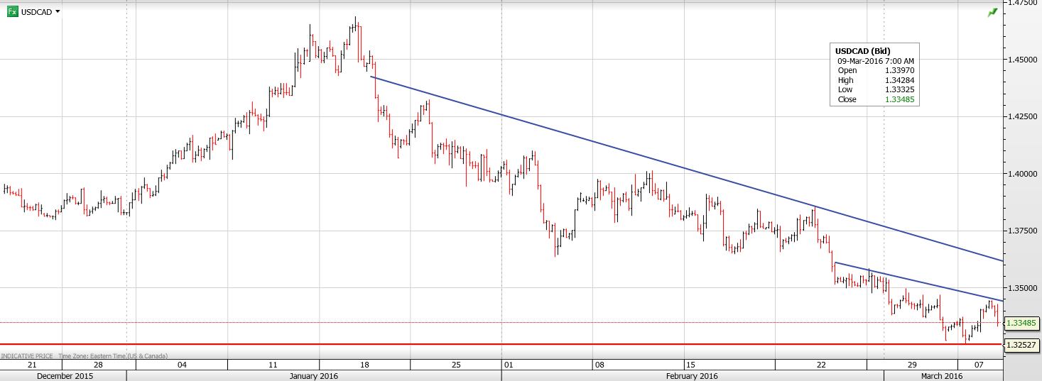 The Bank of Canada did what they said they would do which was nothing. They left the target for the overnight rate at ½% however the statement was smugly cautious. They patted themselves on the back for what they believe was anticipating the current progression of the global economy and are content to wait for the impact of the upcoming fiscal measures by the Federal government. The notes of caution splashed throughout the press release appear to have been included to keep FX traders from ditching rate cut views and to act as a brake against Loonie gains. So far it didn’t work. USDCAD dropped to from 1.3416 to 1.3350, where it sits now.