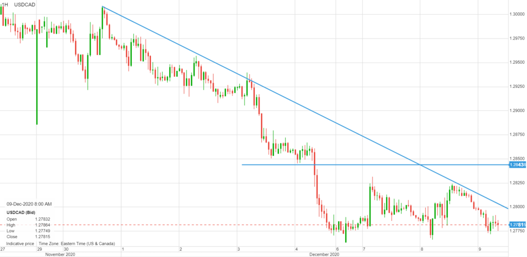 USDCAD gave back yesterday afternoon’s gains and dropped steadily overnight. The catalyst was broad-based US dollar selling after reports of another US COVID-19 Relief package proposal. USDCAD prices dropped in tandem with AUDUSD and NZDUSD gains. Today’s Bank of Canada monetary policy statement will not be a factor for FX traders. They are widely expected to leave rates and policy unchanged. There isn’t even a press conference. USDCAD direction continues to be dictated by US dollar sentiment, which at the moment, is very bearish due to vaccine-fueled hopes for a global economic boom in 2021. However, FX liquidity is slowly evaporating into the holiday season and year end. However, USDCAD tends to rally in December, due to one-off year-end trades.