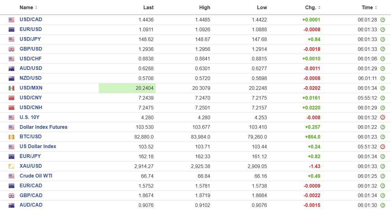 USDMXN is trading with a modest bearish bias after the US/Canada trade tensions de-escalated and the electricity tariffs were suspended. Traders are awaiting the US inflation data to provide direction.