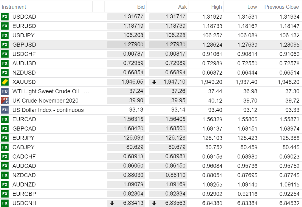 FX open (6:00 am EDT) High, Low, and previous close