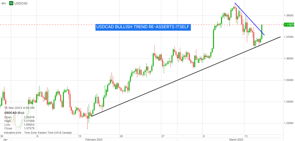 USDCAD is rallying on the back of broad-based, safe-haven demand for US dollars as due to fears that Credit Suisse Bank woes are not isolated, and that other European banking institutions may face similar issues. Shares in Credit Suisse fell over 28% today. Credit Suisse is the 2nd largest bank in Switzerland and it wouldn’t surprise anyone if the Swiss National Bank steps in with a support package.