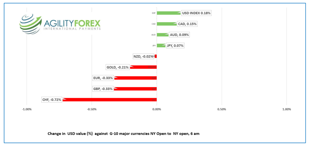 - US dollar opens mixed compared to yesterday but gains in the overnight session.