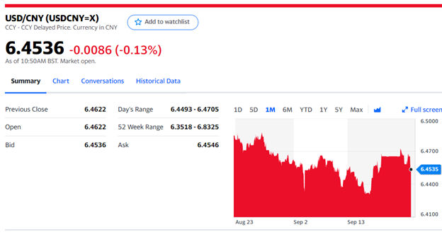 Chart: USDCNY 1 month