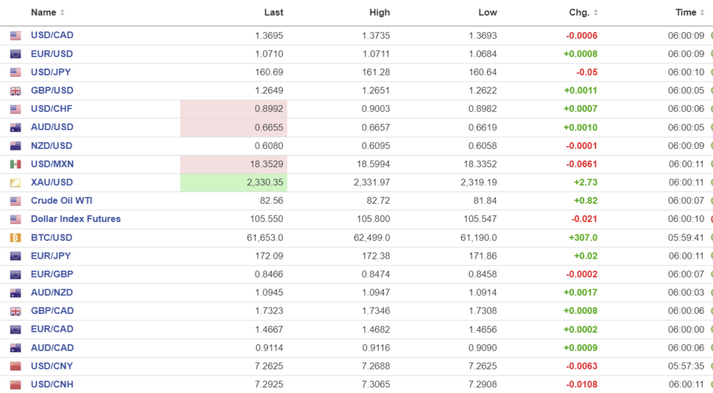 FX high, low, open (as of 6:00 am ET)