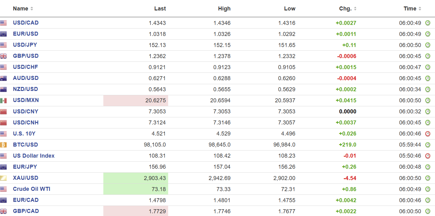 FX high, low, open (as of 6:00 am ET)