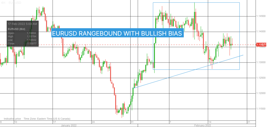 EURUSD was steady in 1.1324-1.1385 band. ECB policymaker Pablo de Cos said, “the direction in which we need to head is clear, but we should not draw premature conclusions as to the time frame. The process will be both gradual and data-dependent.”  The ongoing Russia/Ukraine tensions are also limiting EURUSD gains.