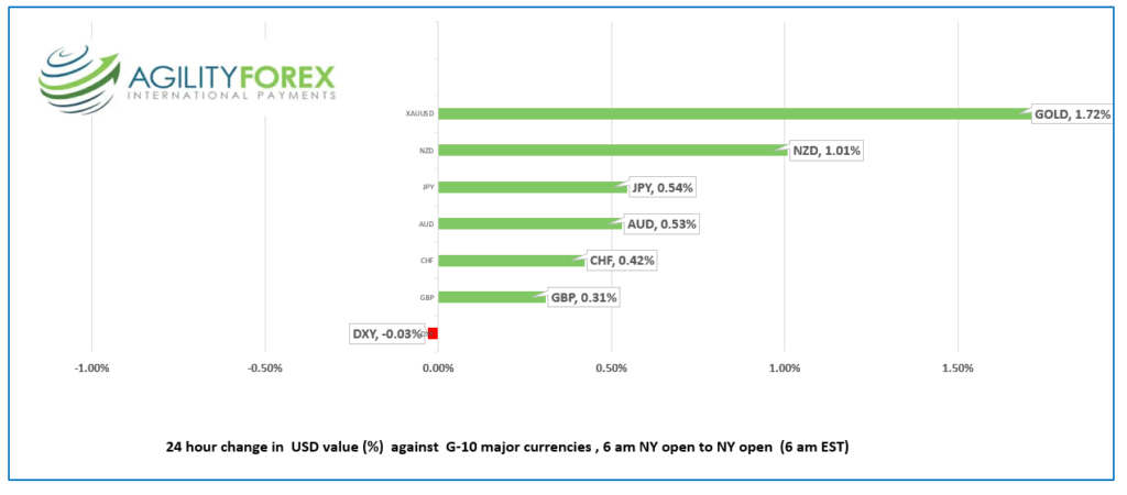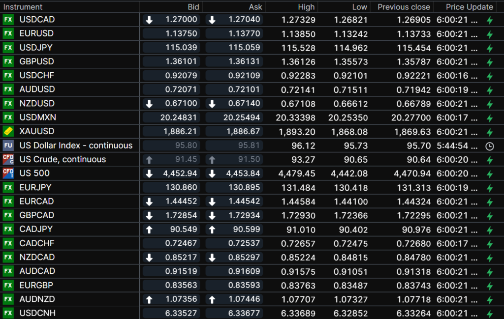 FX open, high, low, previous close as of 6:00 am ET