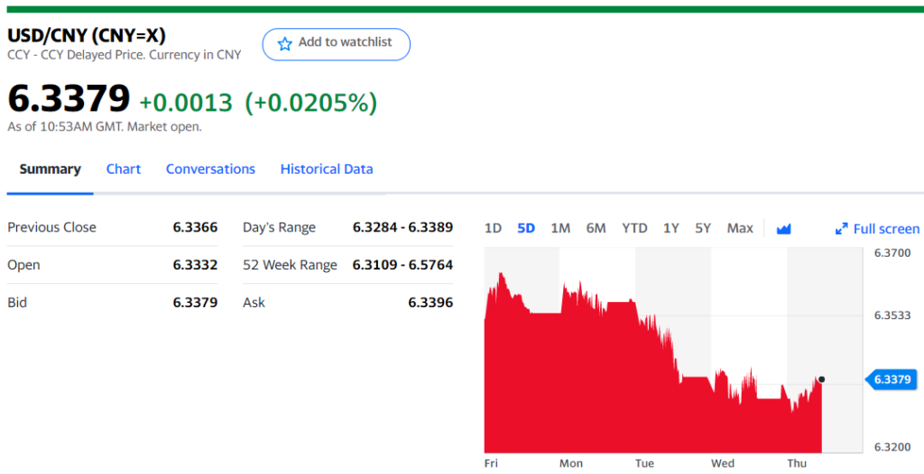 Today’s Bank of China Fix 6.3321, previous 6.3463