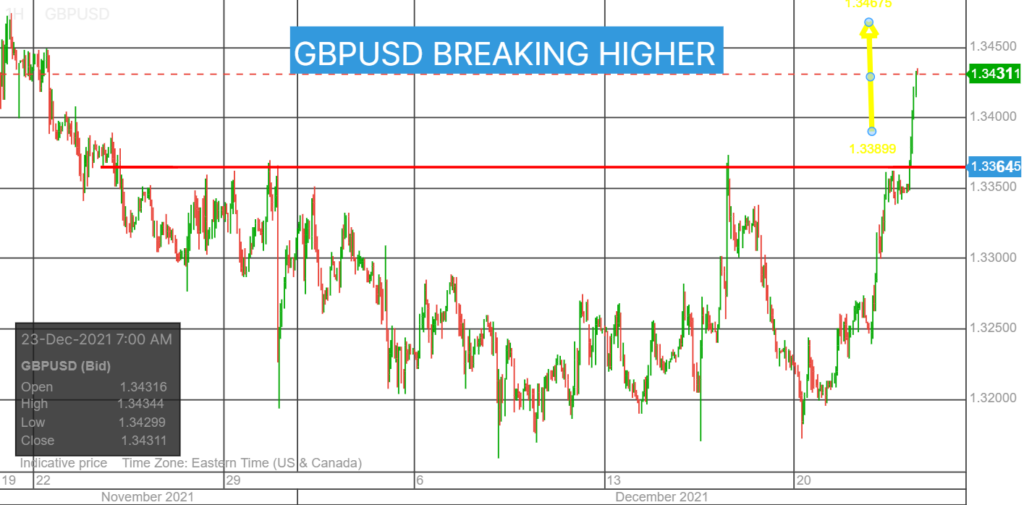 GBPUSD gave back some of today’s gains after the US economic data. GBPUSD rallied from 1.3344 to 1.3435 then fell to 1.3410 in NY. Prices are supported by diminished concerns about the Omicron variant and renewed speculation of additional BoE rate hikes.