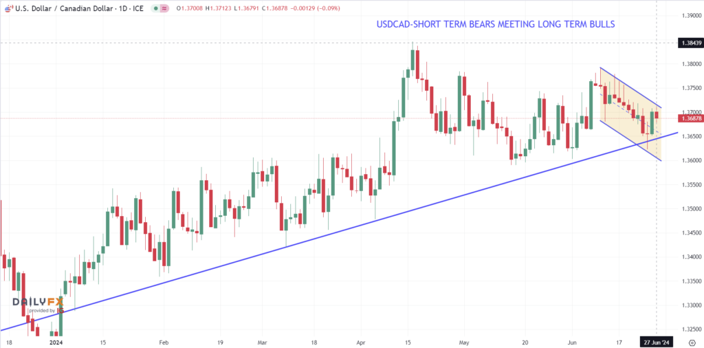 The longer term technicals are bullish with the January 2024 uptrend line intact above 1.3610 with a cluster of moving average support also in the area.