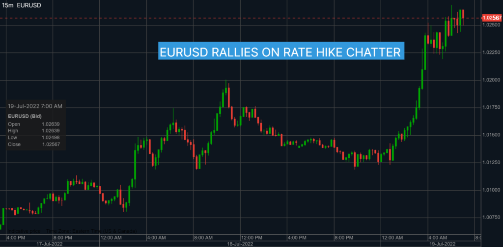 The higher than expected rate hike story got additional support after EuroStat said, “Eurozone inflation The euro area annual inflation rate was 8.6% in June 2022, up from 8.1% in May. A year earlier, the rate was1.9%. European Union annual inflation was 9.6% in June 2022, up from 8.8% in May.”  The results were expected.