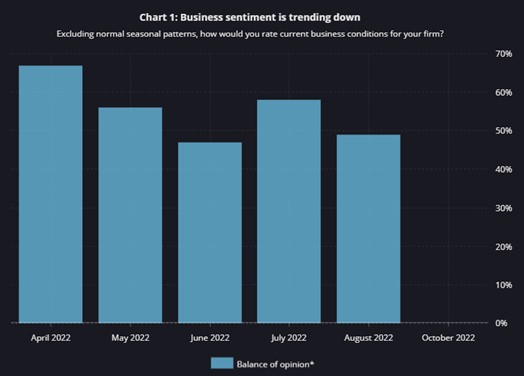 The survey noted “Business confidence has softened. Many firms expect slower sales growth as interest rates rise and demand growth shifts closer to pre-pandemic levels. Early signs suggest that pressures on prices and wages have started to ease, but firms’ inflation expectations remain high.
