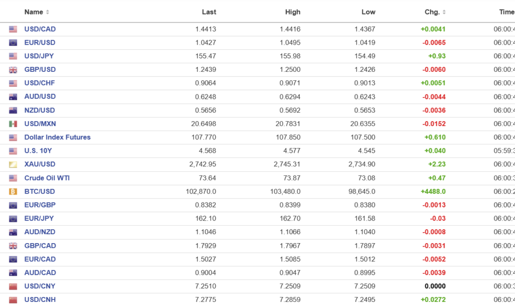 The tariff drama is preceded by the Bank of Canada and FOMC meetings on Wednesday. The BoC is expected to cut rates by 25 bps while the Fed leaves rates unchanged. The 10-year Canada/US bond spread remains at -131.2.