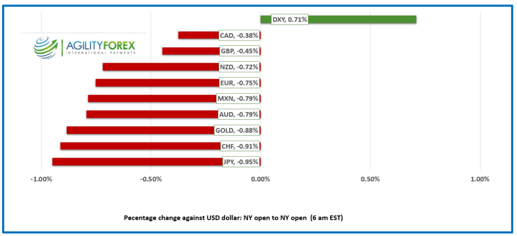 Donald Trump must have felt that he was being ignored because of the massive media coverage of DeepSeek and its impact on AI stocks. That must have been why he flogged the tariff horse again. He responded to a question about incoming Treasury Secretary Scott Bessent favouring gradual increases in tariffs starting at 2.5% by saying he didn’t think that was Bessent’s view. He went on to say, “I have it in my mind what it’s going to be, but I won’t be setting it yet, but it’ll be enough to protect our country.” He also talked about slapping levies on semiconductors, pharmaceuticals, copper, steel, and aluminium. The news ignited fresh demand for US dollars.