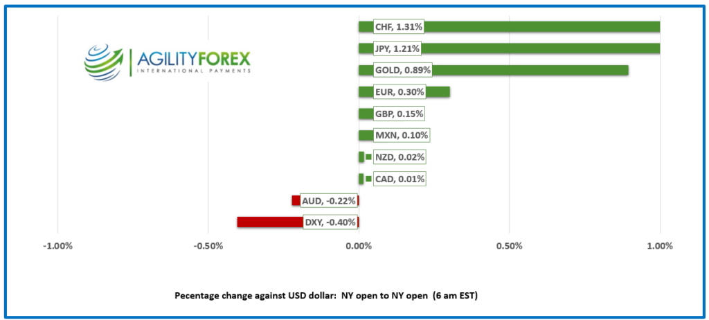 - US dollar opens little changed from close but down since Wednesday’s open.