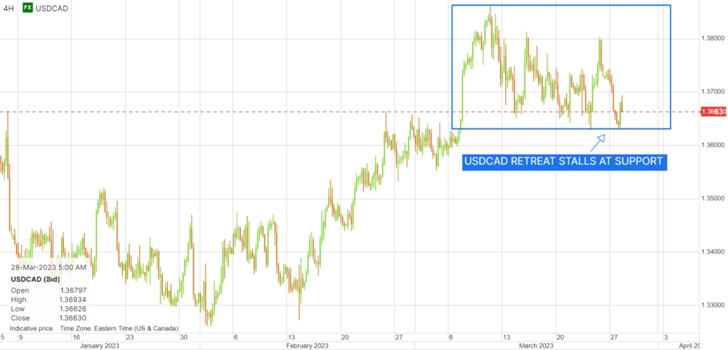 USDCAD fell in early Asia trading, then recovered the losses in Europe. USDCAD direction is closely tracking S&P 500 futures price action and equity traders are not sure of what to do. Recession and ongoing concerns around the US banking system are offset by hopes for the Fed to cut interest rates in the summer.