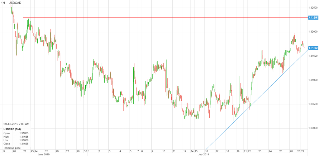 USDCAD climbed alongside the broad US dollar strength and bullish technicals targeting resistance at 1.3230. Traders are looking ahead to Wednesday’s May GDP report (forecast 0.1% vs 0.3% in April)