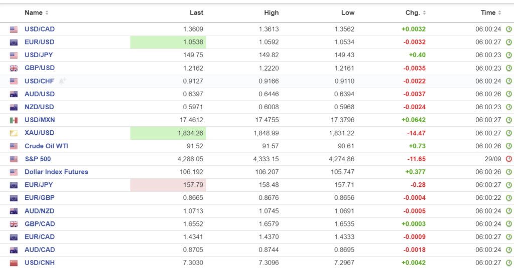 FX high, low, open