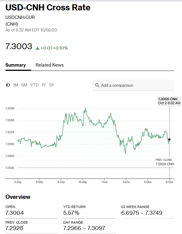 Fed Chair Jerome Powell and Philadelphia Fed President Patrick Harker are in a roundtable discussion at 11:00 am EDT. Asia markets were extra quiet due to the Chinese Golden Week holidays and the Australian Labour Day holiday. European bourses are modestly lower, and S&P futures are unchanged. The U.S. 10-year Treasury yield climbed to 4.631% from Friday’s close of 4.571%.