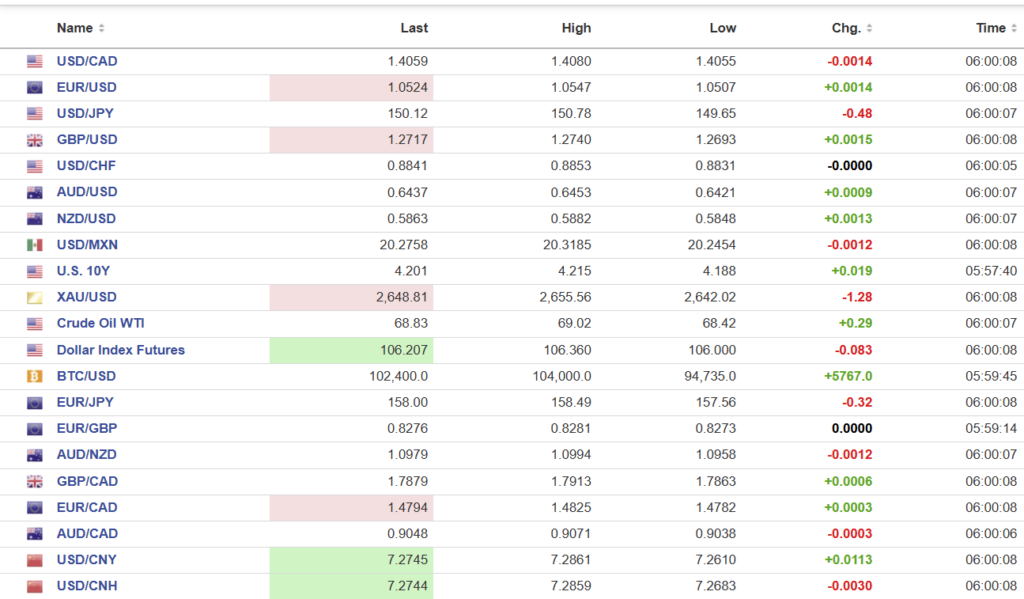 FX high, low, open (as of 6:00 am ET)
