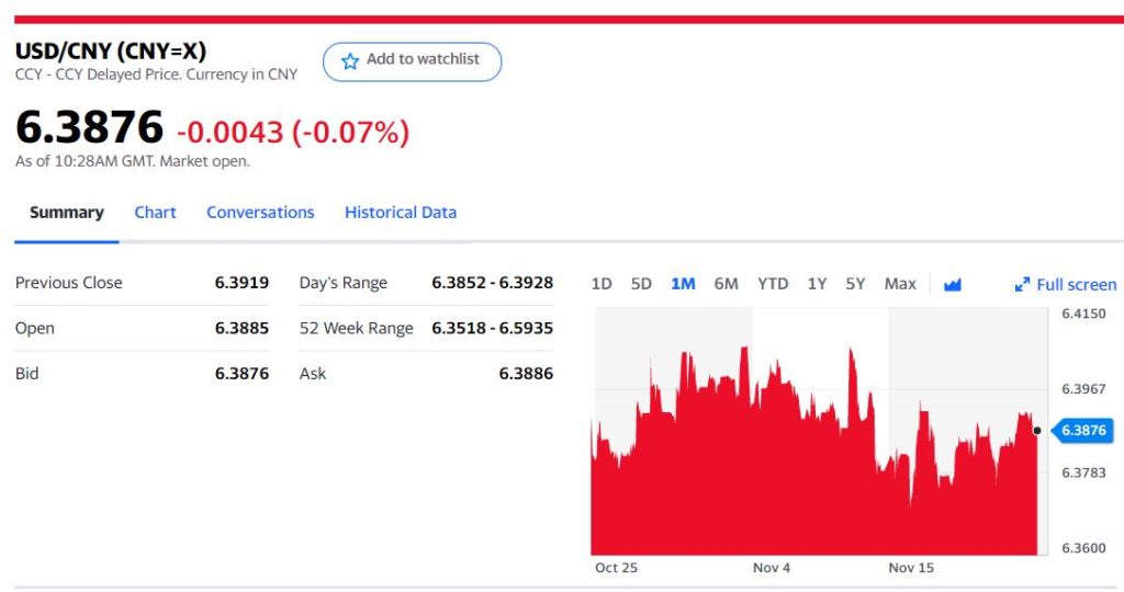 Chart: USDCNY 1 month