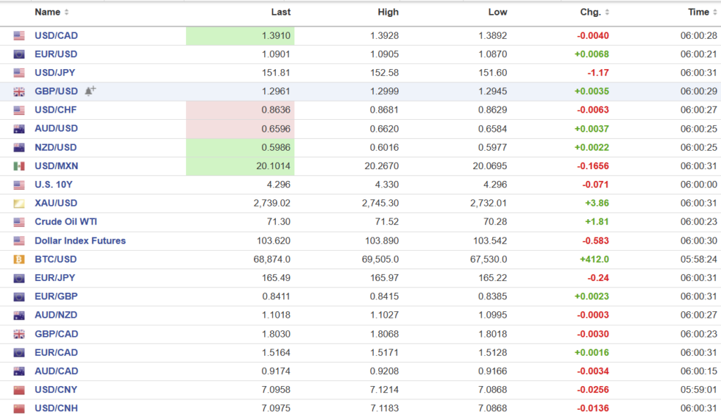 USDCAD looked like it was heading to the moon on Friday. The Bank of Canada is expected to cut rates by 50 bps on December 11, US 10-year yields were close to 3.40%, oil prices were sliding and Trump’s chances for winning the election looked pretty good. USDCAD closed at the peak for the day and for all of 2024. Then a poll in Iowa happened which gave Harris a 3-point lead over Trump. The US dollar plunged and USDCAD went down as well.