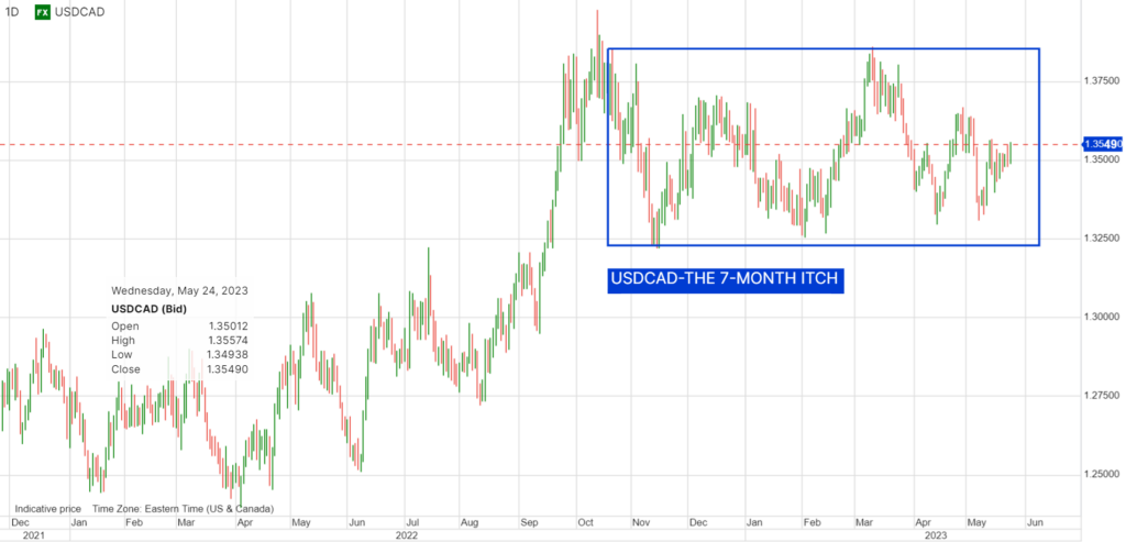 Longer term, USDCAD has been range bound (1.3220-1.3860) since October 2022