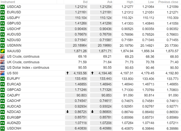USDCAD open 1.2121-25, Overnight range 1.2106-1.2128,  Previous  close 1.2110